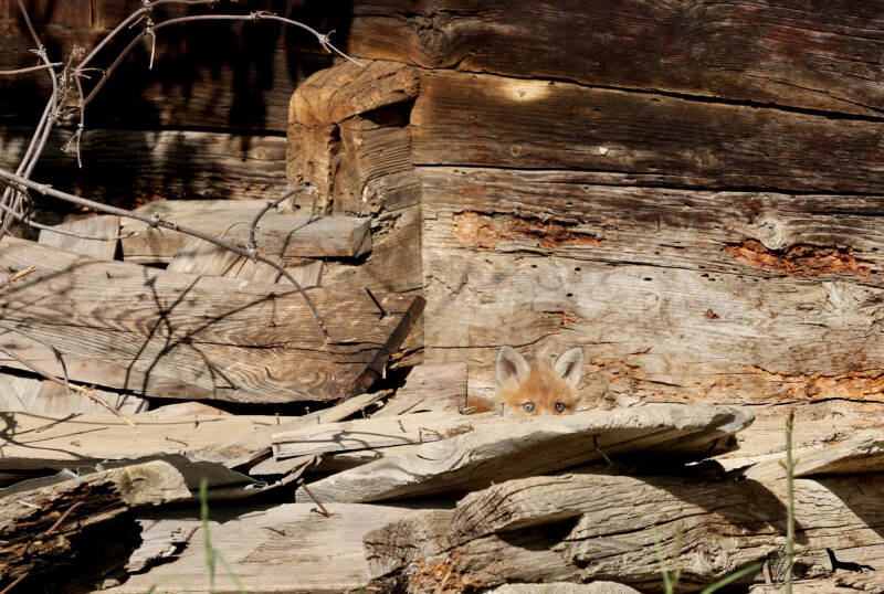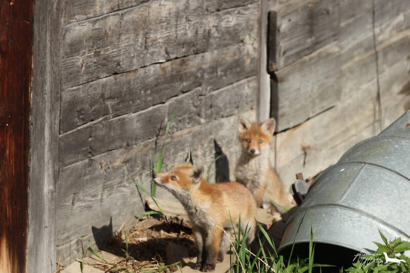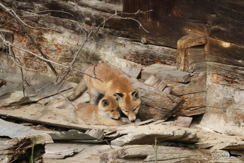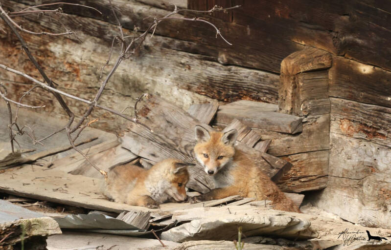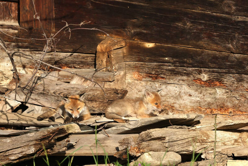 Maître Corbeau sur un arbre perché..... Ca aurait pu l'être !!!! Dommage, c'est juste une corneille qui est venue taquiner les renardeaux !!!!